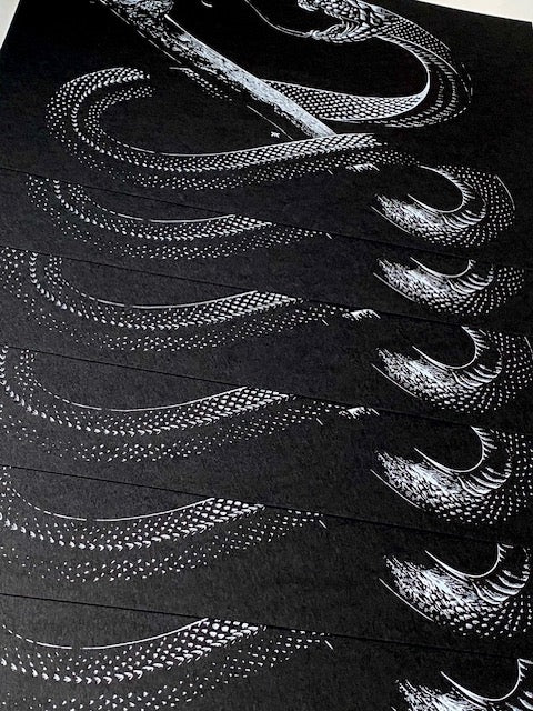 - white print on black French paper.